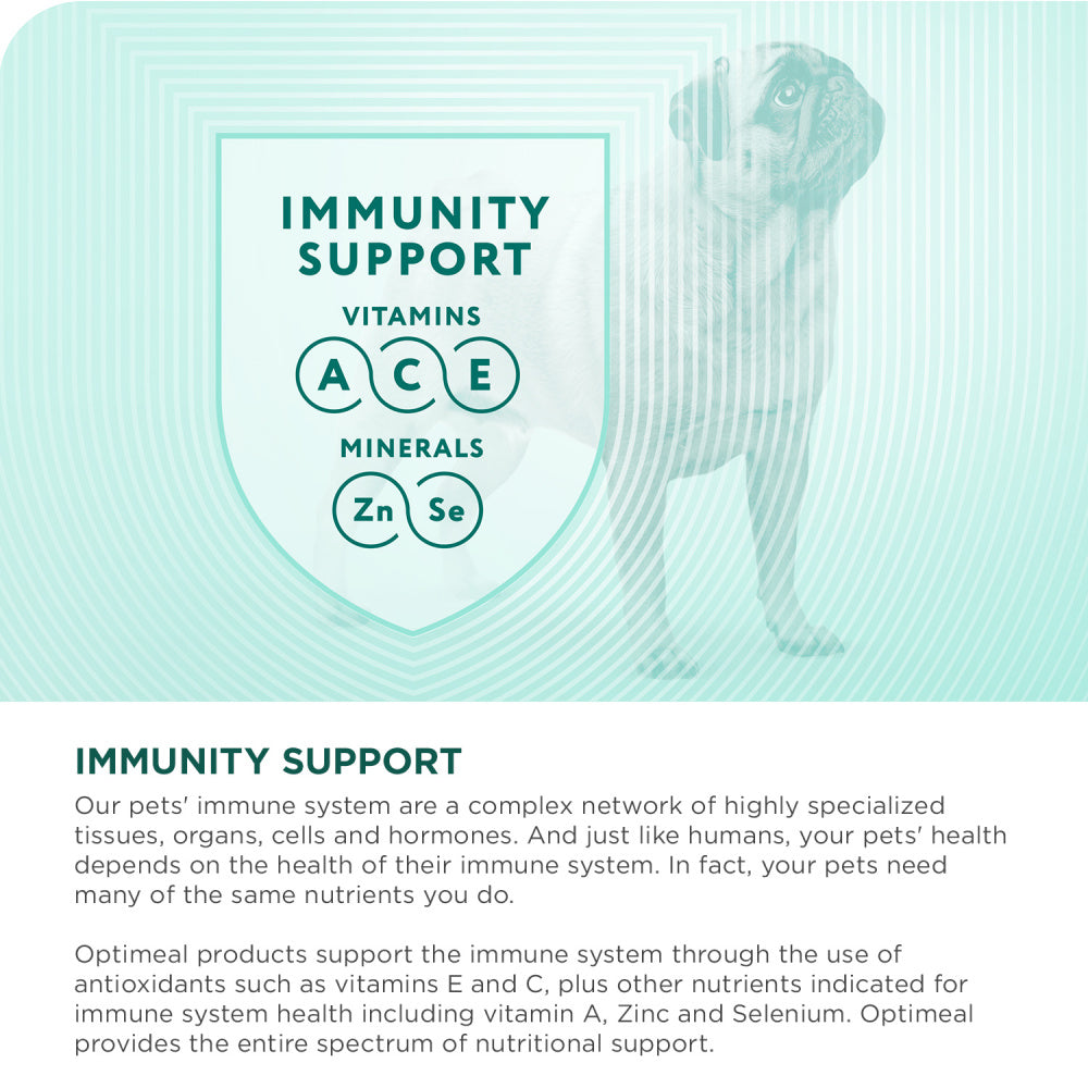 Optimeals small breed recipe supports high-energy little dogs with a unique mix of high-quality protein of lamb, other foods rich in protein combined with wholesome grains, berries, and other nutrients. This recipe maintains immunity and optimum muscle, bone, and brain health. Dogs love the chewy texture and premium taste.