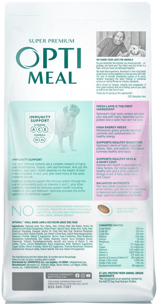 - FRESH LAMB IS THE FIRST INGREDIENT. Optimeals high lamb content provides your dog with highly digestible quality protein and a taste that cant be beat