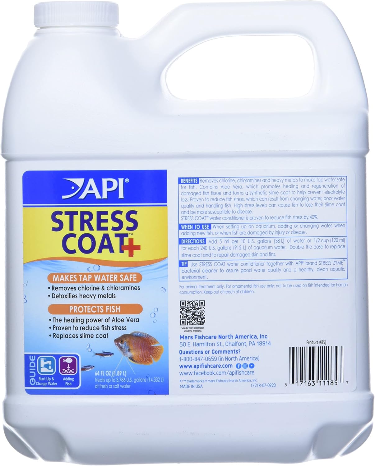 Treat your tap water, and provide a safe environment for freshwater fish instantly and easily with API STRESS COAT Freshwater Aquarium Water Conditioner. Tap water contains chlorine, chloramines and ammonia which can cause gill and tissue damage, breathing difficulty, stress and death. API STRESS COAT Aquarium Water Conditioner works instantly as a water conditioner to remove chlorine and chloramines from tap water and neutralize heavy metals. API STRESS COAT Freshwater Aquarium Water Conditioner Treatment contains aloe vera, and it is scientifically proven to reduce fish stress by 40% and heal damaged fish tissue. This conditioner replaces the natural secretion of slime that is interrupted by handling, shipping, fish fighting, or other forms of stress and helps heal torn fins and skin wounds while promoting tissue regeneration. API STRESS COAT is recommended by professional fish handlers.