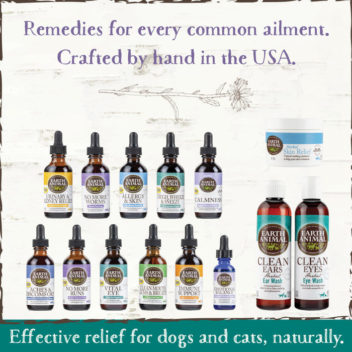 Hand-crafted in the Green Mountains of Vermont, our Herbal Remedies are made with plants that contain naturally occurring beneficial properties providing healing, comfort, and wellness for the most common conditions dogs and cats experience such as aches & discomfort, allergy & skin issues, anxiety, stress, nervousness, oral health, bad breath, coughing, wheezing, sneezing, immune support, diarrhea, worms, urinary support, kidney support, and eye irritation.