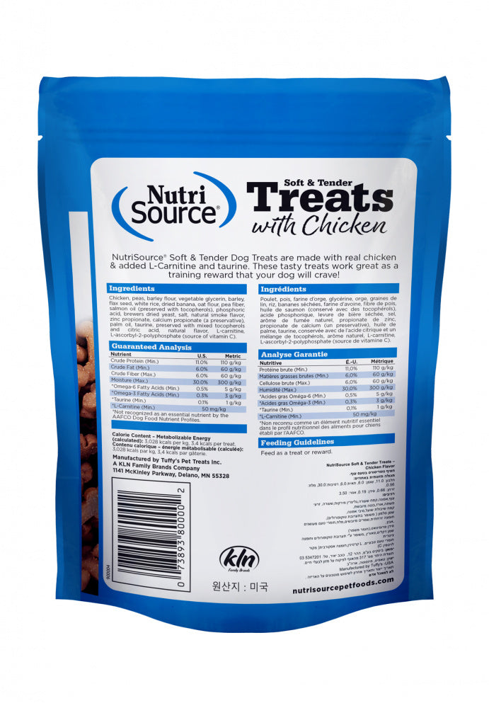Made with high quality ingredients as well as added vitamins and minerals, NutriSource Soft and Tender Chicken Dog Treats are the perfect reward for your pup! These soft and chewy treats are made with real chicken and have L-Carnitine to help your pup burn fat.