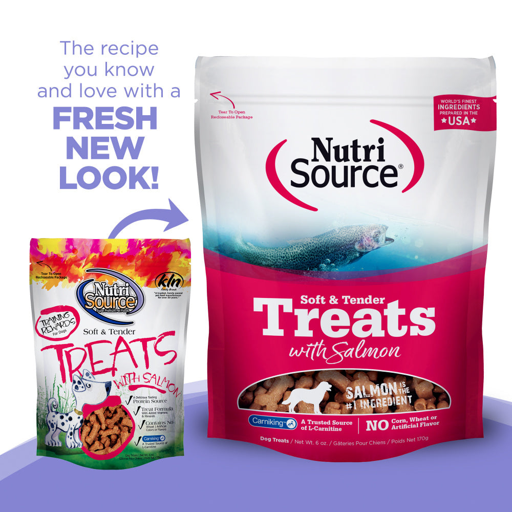 Made with high quality ingredients as well as added vitamins and minerals, NutriSource Soft and Tender Salmon Dog Treats are the perfect reward for your pup! These soft and chewy treats are made with real salmon and have L-Carnitine to help your pup burn fat.
