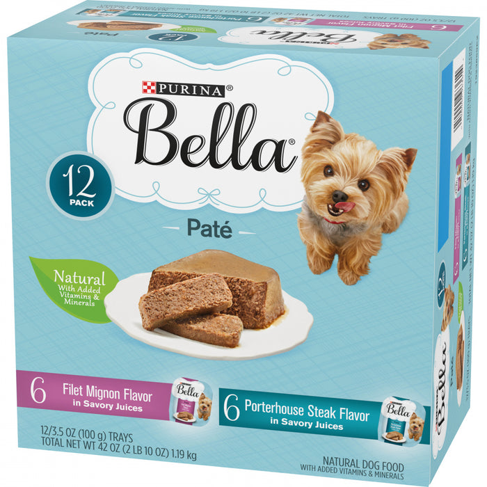 Purina Bella Natural Small Breed Pate Variety Pack Filet Mignon & Porterhouse Steak in Juices Wet Dog Food