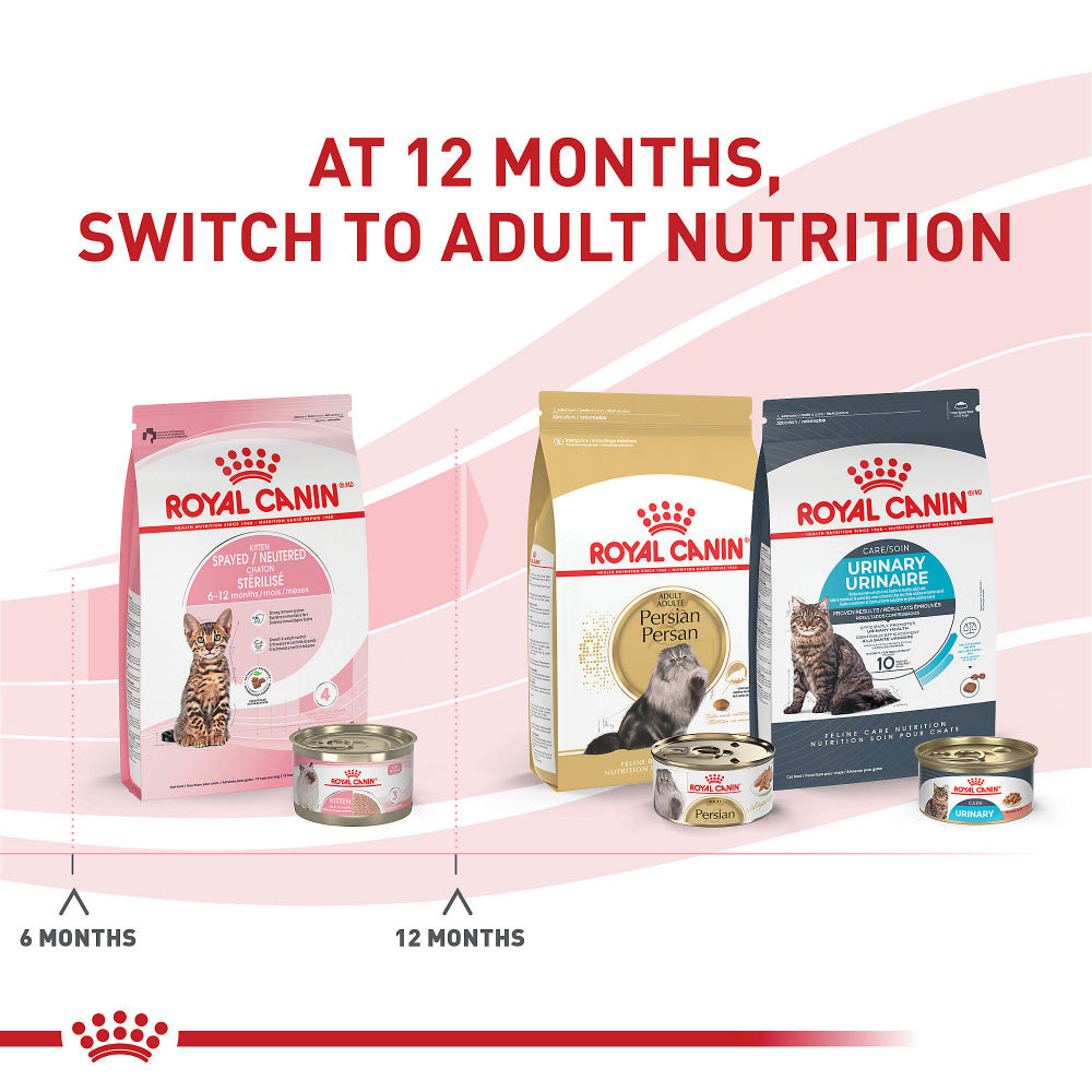 With so many cat and kitten food options out there focused on ingredients, how do you know what’s best? Royal Canin knows there’s a science to it—researching each pet’s unique nutritional needs to formulate the most precise combination of nutrients in their diet to help your pet live a magnificent life. Spaying or neutering leaves a lasting impact on a young kitten’s health and weight. Hormone changes lessen energy needs, while giving them a giant appetite. This risky combo means it can be hard to control their weight gain. That’s why it’s critical to give your kitten the right diet from the start. Royal Canin Spayed/Neutered Dry Kitten Food contains a precise blend of essential nutrients your kitten needs after surgery to keep a healthy body weight and growth rate. With optimal levels of fat plus a mix of digestible proteins, vitamins, and minerals, this kitten food supports growing muscles and bones without putting on the pounds. The small, x-shaped kibble is easy to pick up and chew, even as new teeth grow in. And because your kitten's immune system is still developing, this diet contains an exclusive blend of antioxidants and vitamins to strengthen and protect your kitten’s natural defenses, so they can keep growing strong. Backed by nearly 50 years of obsessive research and expertise, Royal Canin continues to innovate pet nutrition. Royal Canin Spayed/Neutered Kitten Food has the essential nutrients kittens need to reach their most magnificent potential.